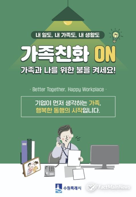 팩트메인뉴스 이훈 기자 | 수원특례시가 일과 가정이 양립하는 가족친화적 기업문화 확산에 본격적으로 나선다.