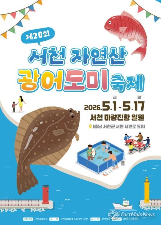 팩트메인뉴스 이훈 기자 | 서천군은 오는 5월 1일부터 17일까지 마량진항 일원에서 ‘제20회 서천 자연산 광어·도미 축제’를 개최한다.