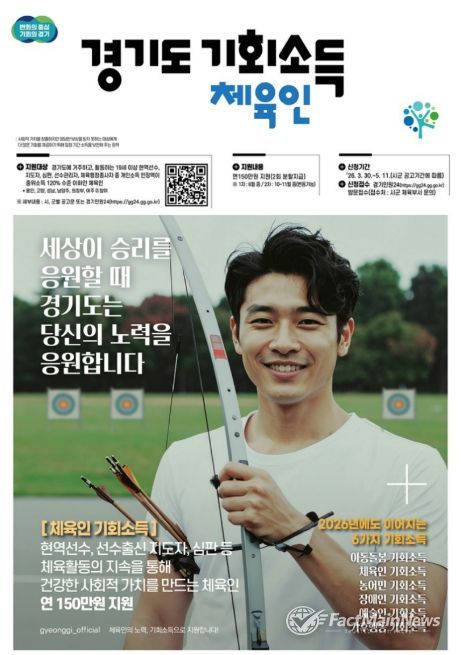 팩트메인뉴스 이훈 기자 | 파주시는 지난 6일부터 시작한 '2026년 경기도(파주시) 체육인 기회소득’신청을 오는 5월 11일까지 받는다.