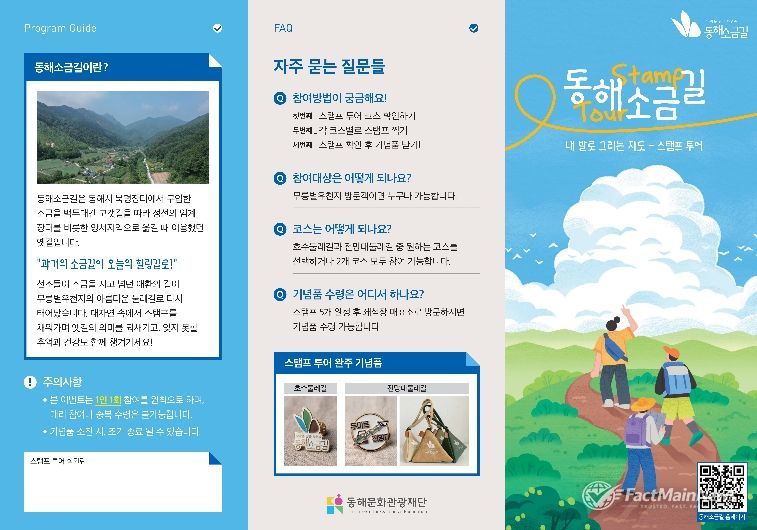 팩트메인뉴스 이훈 기자 | 동해문화관광재단은 동해소금길 제3코스 일부 구간인 무릉별유천지의 주요 경관과 체험 시설을 연계한 ‘동해소금길 트레킹 프로그램’을 운영한다고 밝혔다.