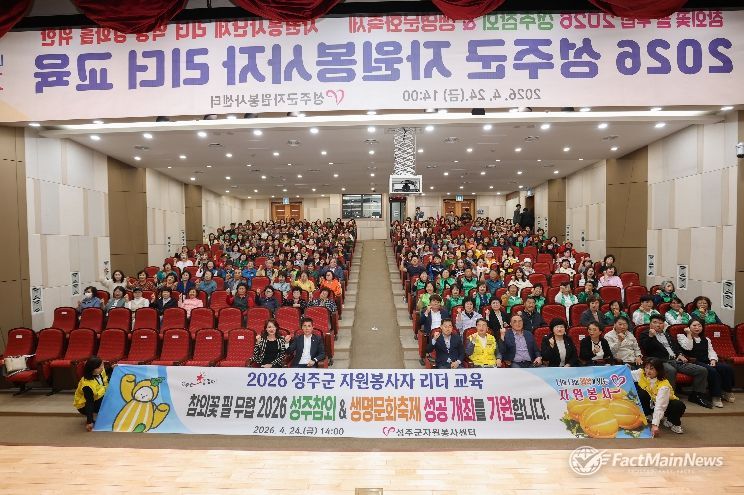 팩트메인뉴스 이훈 기자 | 경북 성주군자원봉사센터(센터장 이명진)는 지역 공동체의 따뜻한 변화를 이끄는 자원봉사 리더들을 한자리에 모아 의미 있는 교육의 장을 마련했다. 4월 24일 성주군청 대강당에서 열린 '2026 성주군 자원봉사자 리더 교육'은 단순한 역량 강화 교육을 넘어 나눔과 연대의 가치를 되새기고, 다가오는 지역 대표 축제를 함께 준비하는 결속의 자리로 깊은 울림을 전했다.