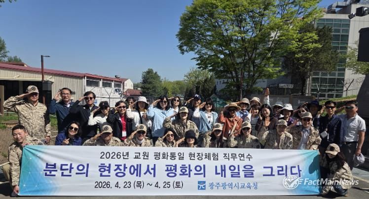 팩트메인뉴스 이훈 기자 | 광주시교육청은 지난 23~25일 파주, 연천, 강화 등 접경지역 일대에서 교원 32명이 참여한 가운데 ‘2026년 교원 평화통일 현장체험 직무연수’를 운영했다.