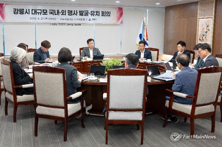 팩트메인뉴스 이훈 기자 | 강릉시는 27일 오전 9시 시청 8층 시민사랑방에서 김상영 강릉시장 권한대행 주재로 대규모 국내외 행사 발굴·유치 회의를 개최했다.