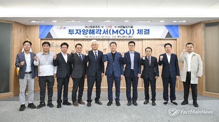 팩트메인뉴스 이훈 기자 | 문경시는 4월 27일 시청 제2회의실에서 신기제2일반산업단지 내 ㈜산청이식품 과 마성농공단지 내 ㈜하늘빛식품과 투자양해각서(MOU)를 체결했다.