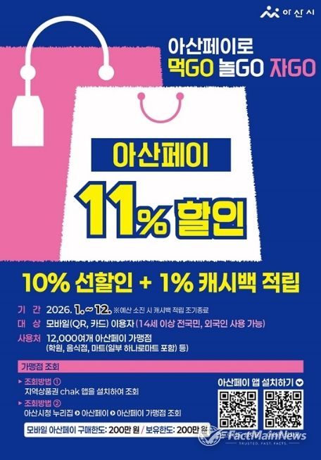 시 관계자는 “3월 역대 최고 판매에 이어 4월에도 아산페이가 완판된 것은 시민들이 아산페이를 일상적인 소비수단으로 선택하고 있다는 점에서 의미가 크다”며 “앞으로도 아산페이를 통해 시민에게는 실질적인 생활비 절감 혜택을 제공하고, 소상공인에게는 안정적인 매출 기반을 넓혀 지역경제 선순환 구조를 더욱 강화하겠다”고 말했다.