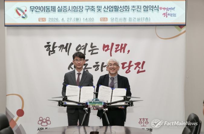 팩트메인뉴스 이훈 기자 | 당진시는 무인이동체 산업의 체계적인 육성과 지역 산업 생태계 조성을 통해 K-드론 산업 거점으로 도약하기 위해 지난 27일 당진시청에서 한국항공우주연구원과 무인이동체 실증시험장 구축 및 산업 활성화를 위한 업무협약(MOU)을 체결했다고 28일 밝혔다.