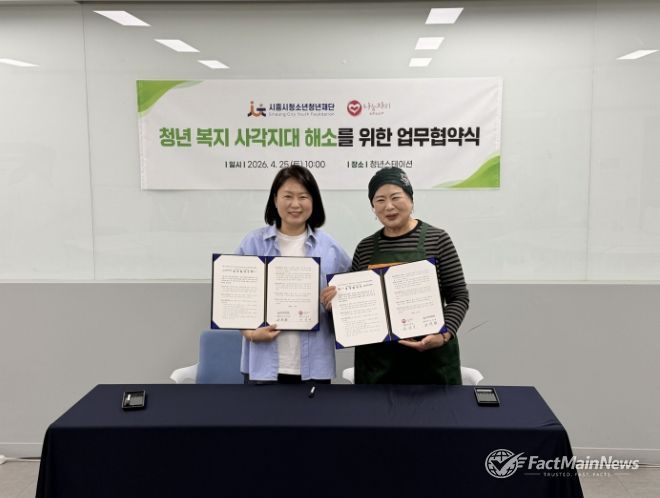 팩트메인뉴스 이훈 기자 | (재)시흥시청소년청년재단은 지난 4월 25일 나눔자리문화공동체와 지역의 청년 복지 사각지대를 해소하고 고립·은둔 청년 지원을 강화하기 위한 업무협약(MOU)을 체결했다고 밝혔다.
