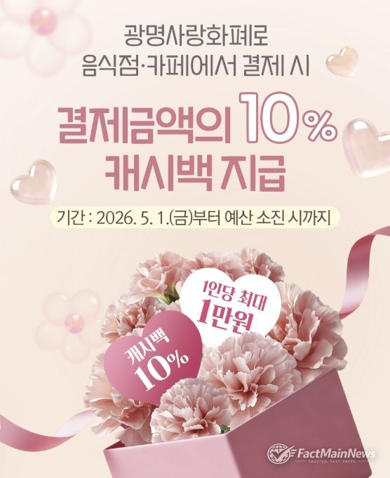 팩트메인뉴스 이훈 기자 | 광명시가 5월 가정의 달을 맞아 가족 외식은 즐겁게, 골목상권은 활기차게 만드는 특별한 캐시백 혜택을 제공한다.