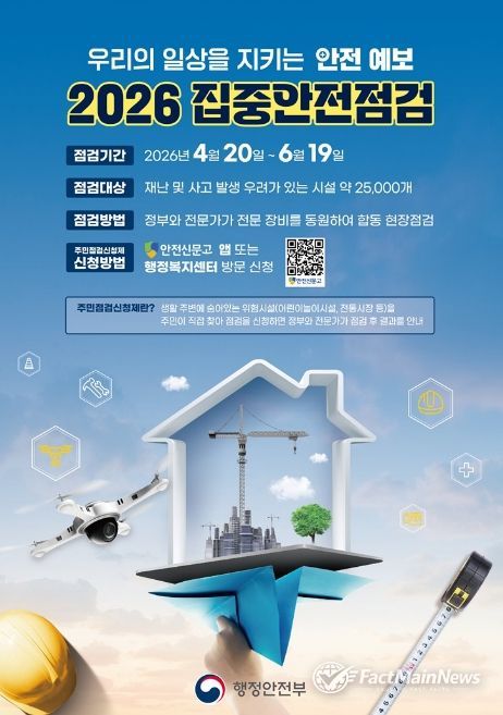 팩트메인뉴스 이훈 기자 | 서울 송파구가 재난을 예방하고 구민 안전을 확보하기 위해 오는 6월까지 관내 주요 시설물 94개소를 대상으로 ‘2026년 집중안전점검’에 나선다고 밝혔다.