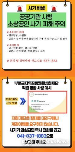 팩트메인뉴스 이훈 기자 | 부여군 지역공동체활성화재단은 최근 재단 직원을 사칭하여 물품 구매를 요청하는 의심 사례가 확인됨에 따라, 지역 소상공인과 협력업체를 대상으로 피해 예방 안내에 나섰다고 밝혔다.