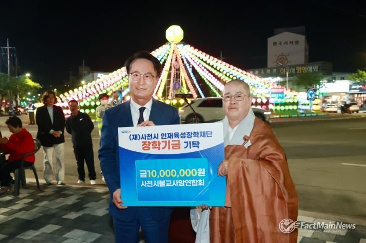 이번 기탁은 부처님 오신 날을 기념해 온 세상에 지혜의 등불을 밝히듯, 사천의 미래를 이끌어갈 학생들에게 희망의 빛을 전하고자 마련됐다.