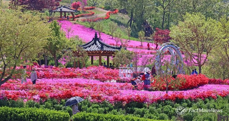 특히, 4월중순부터 본격 개화한 꽃잔디는 대지를 뒤덮은 분홍빛 융단을 깔아 놓은 듯한 장관을 연출하고 있으며, 이어 개화를 시작한 철쭉은 선명한 색감으로 공간의 깊이를 더해 방문객들의 감탄을 자아내고 있다.