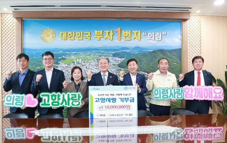 팩트메인뉴스 이훈 기자 | 의령군은 지난 24일 창원시 NH농협 임직원 3명이 군을 방문해 지역 농협 임직원들이 모금한 고향사랑기부금 1,000만원을 전달했다고 밝혔다.