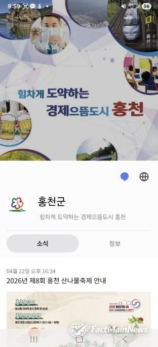 팩트메인뉴스 이훈 기자 | 홍천군은 공공 행정 문자의 신뢰성을 높이고 군민과의 소통을 강화하기 위해 통합 메시지 서비스 개선을 추진한다.