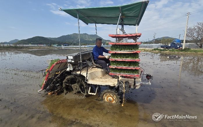팩트메인뉴스 이훈 기자 | 상주시는 4. 27. 올해 첫 모내기를 실시하는 모서면 도안리 소재 농가의 모내기 현장을 방문하여 올 한해 풍년농사를 이루도록 농업인들을 격려했다.
