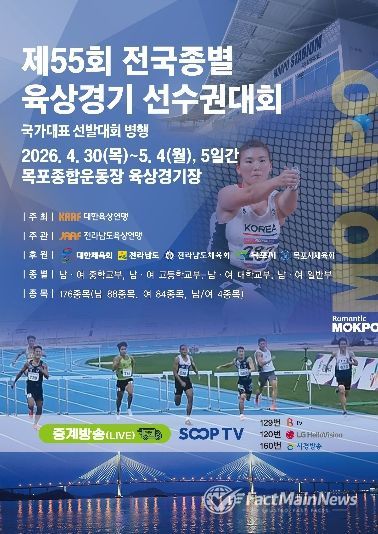 팩트메인뉴스 이훈 기자 | 목포시는 오는 4월 30일부터 5월 4일까지 5일간 목포종합경기장에서 ‘제55회 전국종별육상경기선수권대회’와 ‘2026 아시아투척선수권대회’를 개최한다고 밝혔다.