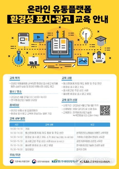 팩트메인뉴스 이훈 기자 | 공정거래위원회와 기후에너지환경부는 4월 29일 한국환경산업기술원 대강당(서울 은평구 소재)에서 온라인 유통사를 대상으로 ‘환경성 표시·광고 교육’을 개최한다고 밝혔다.