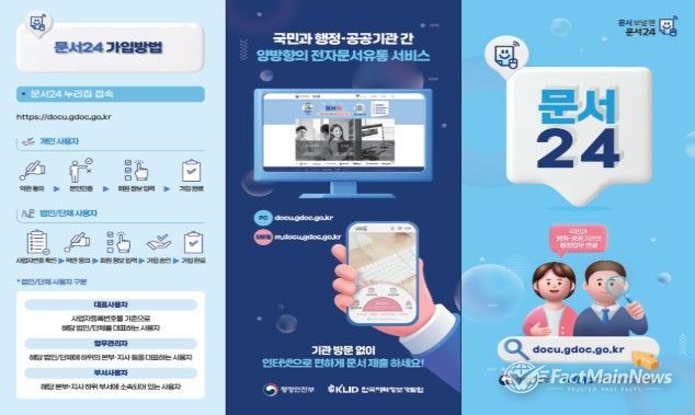 팩트메인뉴스 이훈 기자 | 행정안전부는 행정·공공기관과 국민 간 전자문서 수발신을 지원하는 ‘문서24’ 시스템의 이용 활성화를 위해 미이용 기관을 직접 방문하는 설명회를 개최한다고 밝혔다.