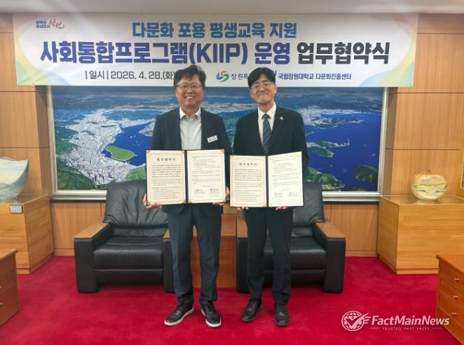 팩트메인뉴스 이훈 기자 | 창원특례시는 시청 접견실에서 국립창원대학교와 외국인 주민의 안정적인 지역사회 정착 지원을 위한 '사회통합프로그램 운영' 업무협약을 체결했다고 밝혔다.