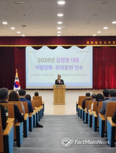 팩트메인뉴스 이훈 기자 | 경상남도교육청은 28일 경상남도교육청 진로교육원에서 학교 관리자와 보건교사, 교육지원청 관계자 등 170여 명을 대상으로 ‘2026년 감염병 대응 역량 강화 및 모의훈련 연수’를 개최했다.
