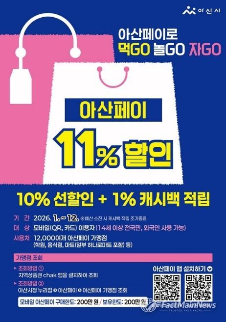 앞으로도 아산페이를 중심으로 지역 내 소비를 유도해 경제 선순환 구조를 강화하고, 민생경제 회복을 위한 정책을 지속적으로 추진할 계획이다.