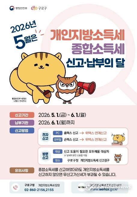 팩트메인뉴스 이훈 기자 | 구로구가 5월 한 달간 개인지방소득세(종합소득) 신고·납부 기간을 운영한다.