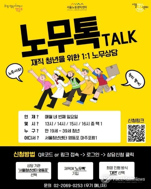 넷째 주 일요일에 진행되는 ‘노무톡(Talk)’은 청년들의 권익 보호를 위해 마련된 프로그램이다. 임금 체불, 부당 해고, 직장 내 괴롭힘 등 근로 현장에서 발생하는 고충을 전문 노무사와 1:1로 깊이 있게 상담할 수 있다. 평일에 시간을 내기 힘든 사회초년생과 아르바이트 청년들에게 든든한 버팀목이 된다.
