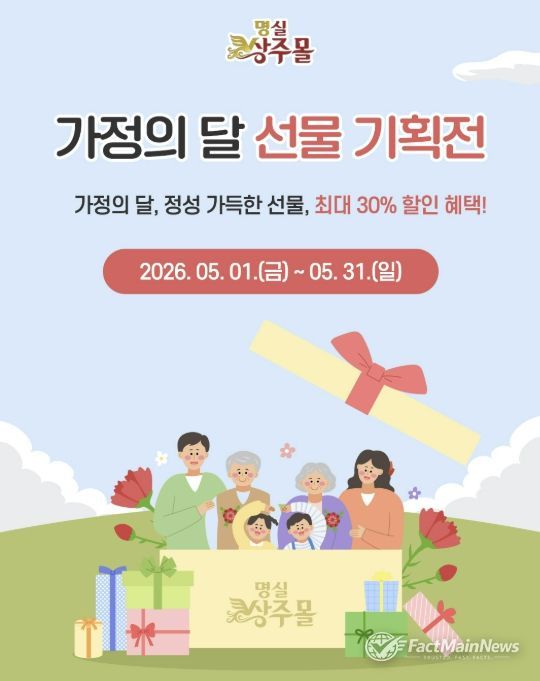 팩트메인뉴스 이훈 기자 | 상주시가 운영하는 농특산물 온라인 쇼핑몰 ‘명실상주몰’에서 5월 가정의 달을 맞아 5월 1일부터 31일까지 특별 할인행사를 진행한다.
