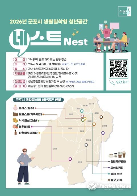 군포시 관계자는 “이번 협약을 계기로 민관 협력 청년생태계가 활성화될 수 있도록 더욱 노력하겠다”며 “청년공간 네스트를 통해 청년들이 자신만의 꿈을 향해 비상할 수 있도록 지원을 아끼지 않겠다”고 밝혔다.