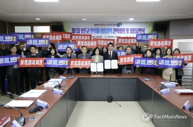 한편 보은군은 지난 3월 16일 투명하고 신뢰받는 공직 사회 구현과 조직 내 청렴 문화 확산을 위해 반부패·청렴정책 전략회의를 개최했으며, 간부 공무원들은 청렴 서약을 통해 △공정한 업무 수행 △부정청탁 근절 △부당지시 및 갑질 금지 등 공직자로서 지켜야 할 핵심 책무를 준수할 것을 다짐했다.