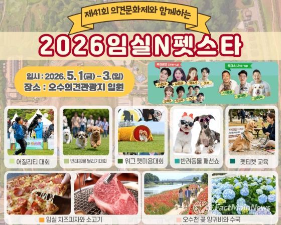 팩트메인뉴스 이훈 기자 | 대한민국 반려동물 성지인 임실군에서 열리는 반려동물 문화대축제인 오수 의견문화제와 함께하는 2026 임실N펫스타가 화려하게 개막한다.