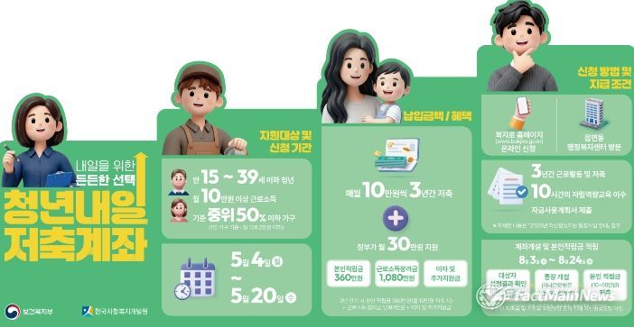 팩트메인뉴스 이훈 기자 | 안성시는 일하는 청년의 근로 의욕을 높이고 자립기반을 마련할 수 있도록 5월 4일부터 5월 20일까지'청년내일저축계좌' 신규 가입자를 모집한다.