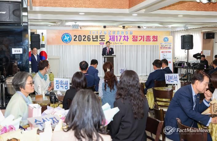 팩트메인뉴스 이훈 기자 | 고성군상공협의회가 4월 29일 고성읍 대웅예식장에서 제17차 정기총회를 열고, 지역 상공인의 단합과 지역경제 활성화 의지를 다졌다.