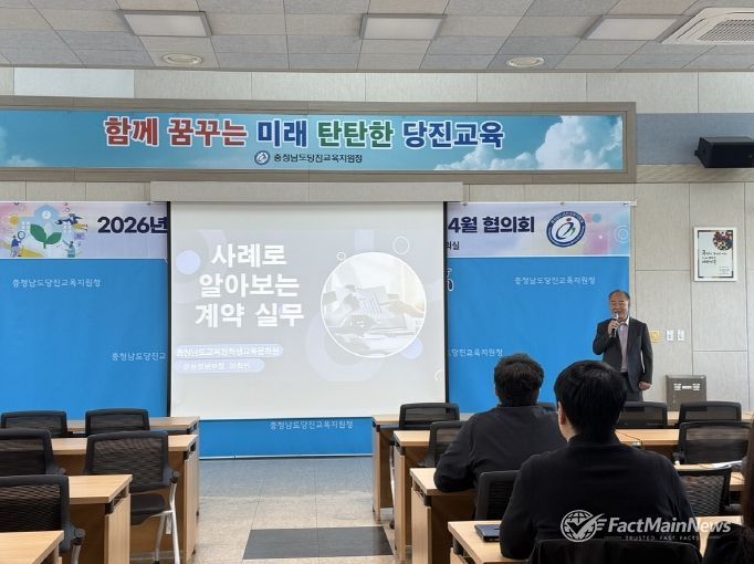 팩트메인뉴스 이훈 기자 | 당진교육지원청은 29일 계약업무 학습공동체 회원과 관내 계약업무 담당자를 대상으로 ‘2026년 청렴 계약업무 연수’를 진행했다.