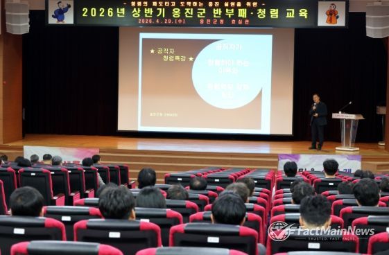 팩트메인뉴스 이훈 기자 | 옹진군은 지난 29일 군청 효심관에서 전 직원을 대상으로 공직윤리 의식 고취를 위한 ‘2026년 상반기 공직자 반부패·청렴 교육’을 실시했다고 밝혔다.