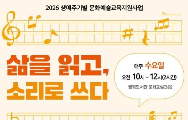 ‘삶을 읽고, 소리로 쓰다’는 40~50대 여성을 대상으로 한 일상 속 소리를 그림 악보로 표현하는 프로그램으로, 4월 22일부터 매주 수요일 오전 10시에 진행된다.