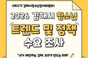 팩트메인뉴스 이훈 기자 | 김해시청소년센터가 운영하는 김해시청소년참여위원회는 지역 청소년의 일상을 반영한 정책 발굴을 위해 ‘2026 김해시 청소년 트렌드 및 정책 수요조사’를 실시한다. 김해시청소년참여위원회는 '청소년기본법' 제5조의2에 따라 청소년이 정책 수립과정에 주체적으로 참여할 수 있도록 구성된 공식 참여기구로, 청소년의 의견을 정책에 반영하는 역할을 수행하고 있다. 이번 조사는 기존 통계자료를 기반으로 질문을 구성해 정책 활용도를 높였다. ‘2025년 김해시 청소년종합실태조사’, ‘청소년 통계’, ‘아동·청소년 삶의 질 보고서’를 반영하여 문항을 구성했으며, 2026년 현재 청소년들의 생활 변화와 수요를 구체적으로 파악하는 데 중점을 뒀다. 설문은 ▲일반사항 ▲일상 및 여가 ▲디지털·AI 활용 ▲고민 및 스트레스 ▲청소년 정책 및 인프라 수요 ▲내가 살고 싶은 도시, 김해 등 6개 분야 24개 문항으로 구성되며, 조사 결과는 청소년참여위원회 정책 제안 활동과 연계해 향후 청소년 정책 수립과 사업 기획의 기초자료로 활용될 예정이다. 강미선 김해시청소년센터장(아동청소년과장)은